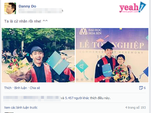 Top 4 cuộc thi Thử thách cùng bước nhảy Đỗ Quang Đăng đã khoe ảnh tốt nghiệp với tấm bằng cử nhận loại khá. Bên cạnh chàng hotboy này là Mẹ- người phụ nữ quan trọng nhất của Đăng.